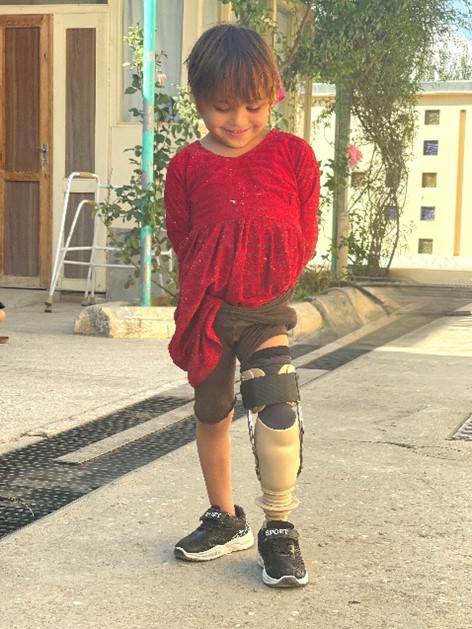 او اخیراً یک پای مصنوعی (پروتزس) را در مرکز بازتوانی فزیکی کمیته بینالمللی صلیب سرخ در فیض آباد بدخشان دریافت کرد. امروز زندگی او تغییر کرده است و برای اولین بار می تواند به تنهایی بایستد و راه برود.