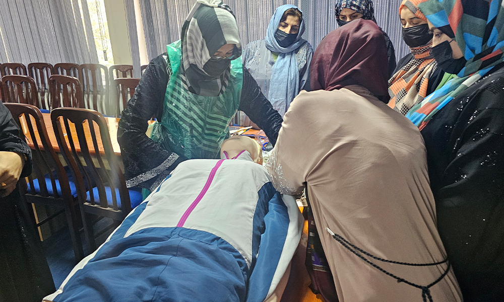 کارمندان صحی در جریان اشتراک در یک دوره آموزشی مراقبت های عاجل ابتدایی در کابل. (عکس: آی سی آر سی/ محمد مسعود صمیمی)
