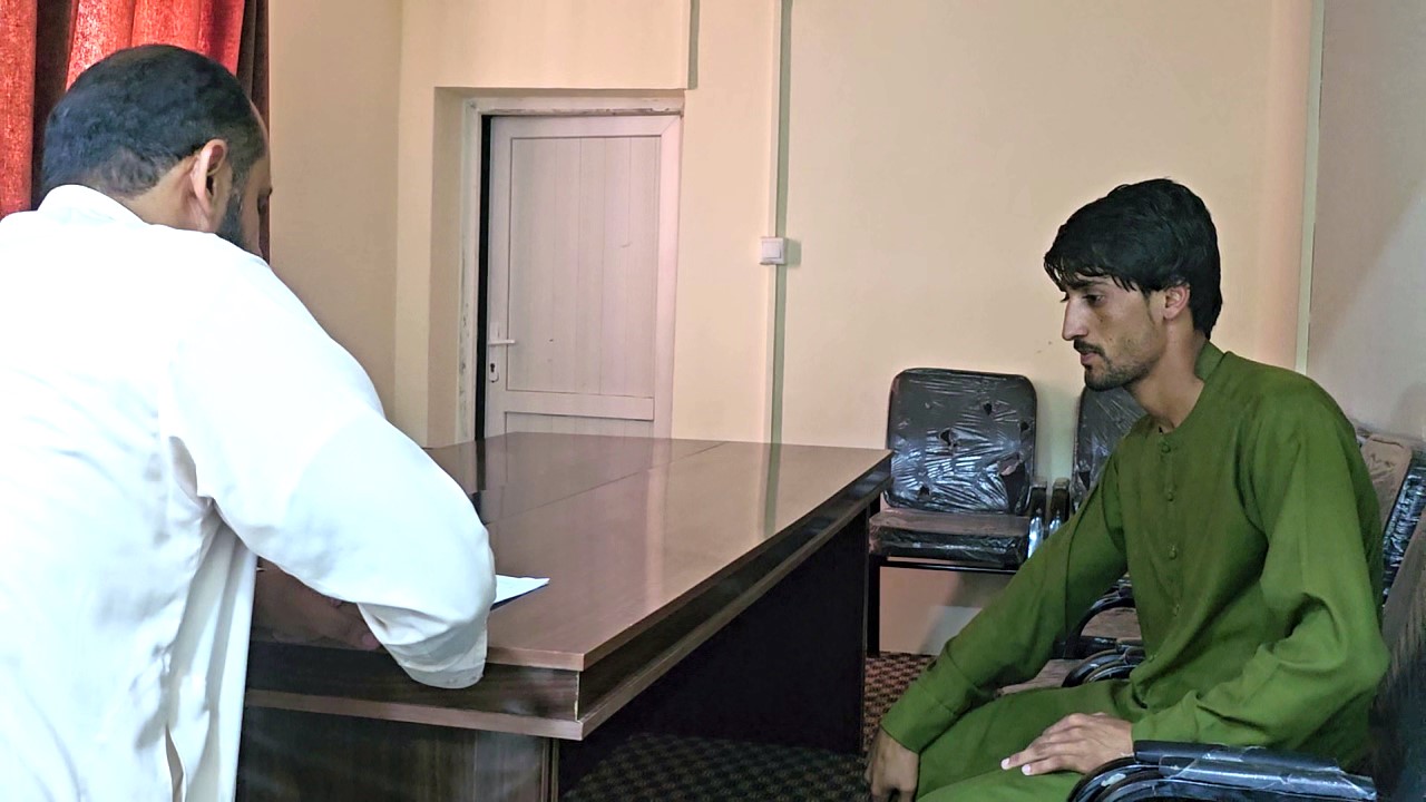 په انځور کې نادر (ښي لور ته)ړ وینئ، چې د آی سي آر سي له یو کارکوونکي سره د جلالاباد په دفتر کې ناست دی. (انځور: آی سي آر سي، ذبیحالله شینواری)