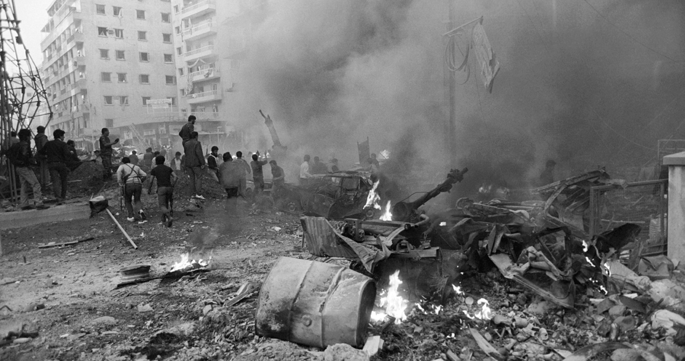 Rescuers and inhabitants search for victims, on March 08, 1985 15 minutes after a car, packed with an estimated 250 kilograms (550 pounds) of TNT exploded in a crowded street of the southern Bir al-Aabed district in mainly Shiite southern suburb of Beirut. At least 75 people were killed and 256 injured in the explosion. The hit area was near the resident of Shiite leader of the Hezbollah Sheikh Mohammad Hussein Fadlallah. / AFP PHOTO / NABIL ISMAIL