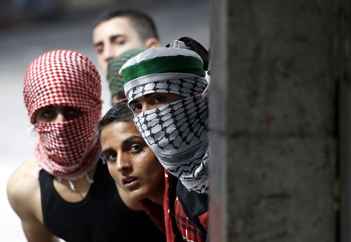 Palestinian youths clash with Israeli security forces in West Bank epa03878960 Palestinians youths hide behind a wall during clashes with Israeli security forces in the West Bank city of Hebron, 22 September 2013. EPA/ABED AL HASHLAMOUN Share this article