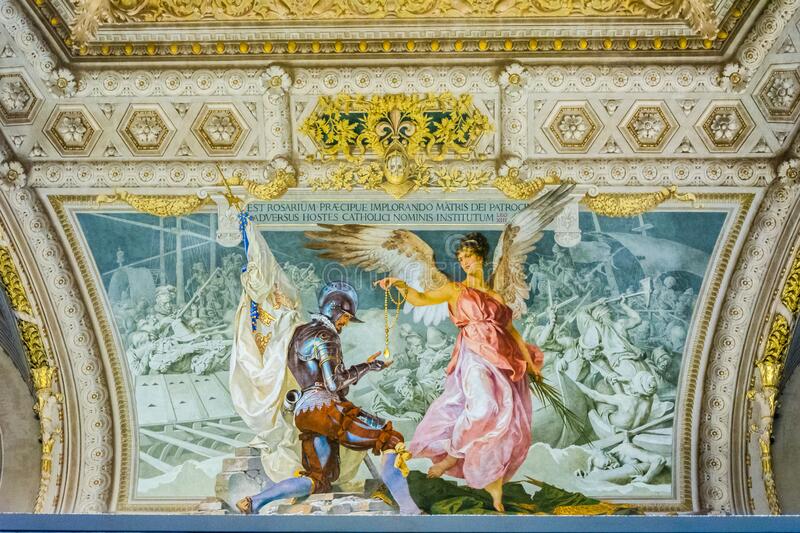 angel-s-gift-to-crusader-fresco-ceiling-vatican-city-oct-paint-details-raphael-rooms-museum-212917547 Share this article