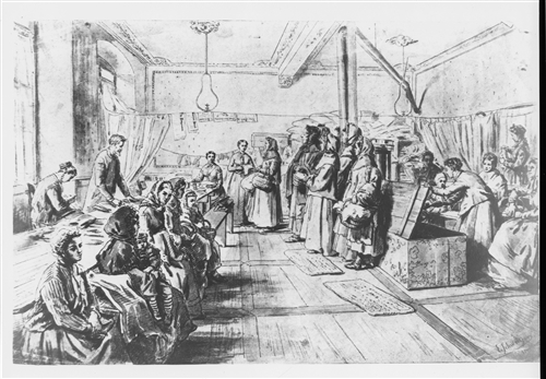 Strasbourg. Clara Barton (1821-1912), future fondatrice de la Croix-Rouge américaine dans un dispensaire. Born in North Oxford, Massachusetts, on December 25th 1821, she rose from small farm background to become a schoolteacher, government worker, Civil War nurse, women's prison superintendent and dedicated humanitarian. Founder of the American Red Cross in 1881.