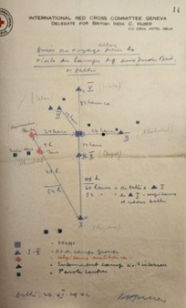 Ces rapports ont pour particularité d’être non toilettés, c’est-à-dire qu’il s’agit de la première version ayant été rédigée par les délégués directement après leur visite.[1] À leur réception au siège du CICR à Genève, ces rapports étaient ensuite repris et mis en forme. Dans une perspective historique, la forme brute de ces rapports permet de rester au plus près des observations faites sur les lieux par les délégués et donne accès à certains documents annexes reçus par ces derniers lors de leurs visites, tels par exemple des journaux de camp rédigés par les prisonniers, des menus de la semaine ou encore des programmes d’activités. Ils comprennent aussi un grand nombre d’indications géographiques quant à la localisation des camps visités, ce qui a motivé la cartographie de ceux-ci.