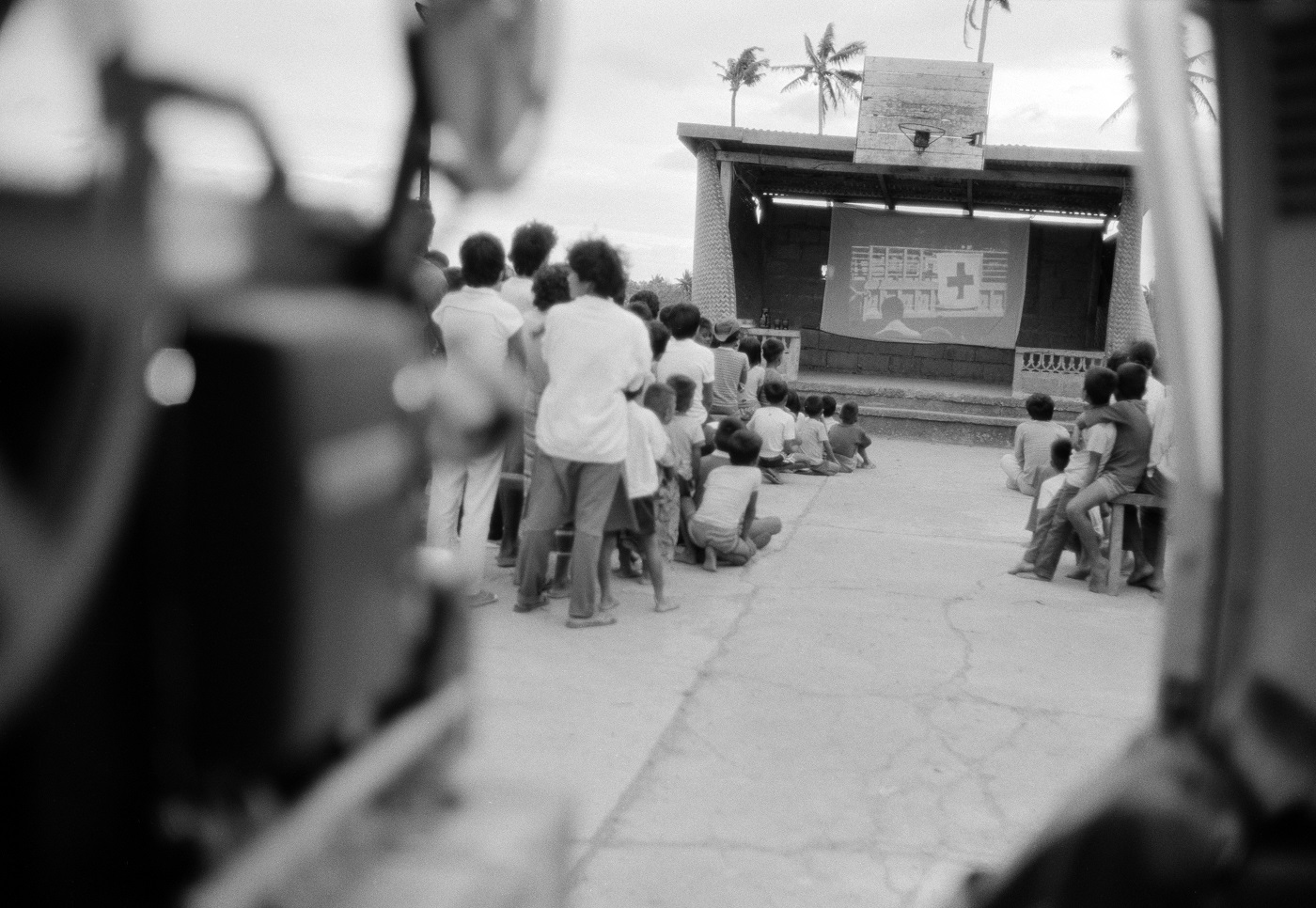 Iloilo, village de Buenavista. Projection de fims CICR aux gens du village. Iloilo, Buenavista village. Screening of ICRC films in the village.