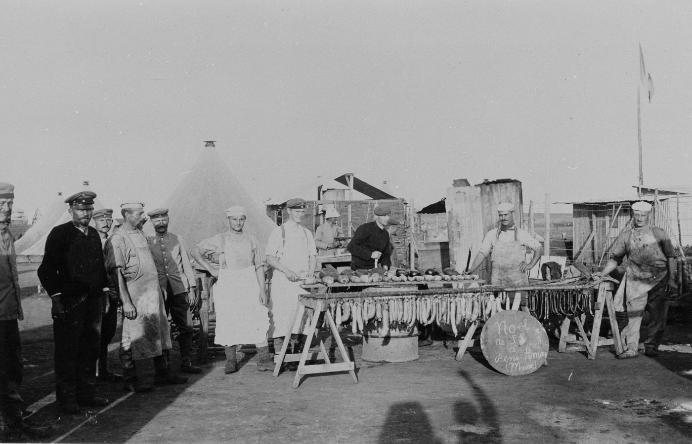Guerre 1914-1918. Camp de Beni-Amar. Visite aux prisonniers de guerre allemands par un délégué du CICR. World War I. Beni-Amar camp. ICRC delegate visiting German prisoners of war. A la demande du gouvernement allemand, le CICR a envoyé 3 missions parallèles au Maroc (Dr. Blanchod et Dr. Speiser), en Tunisie (Dr. Vernet et Dr. R. de Muralt), en Algérie (M. P. Schatzmann et Dr. O.L. Cramer).