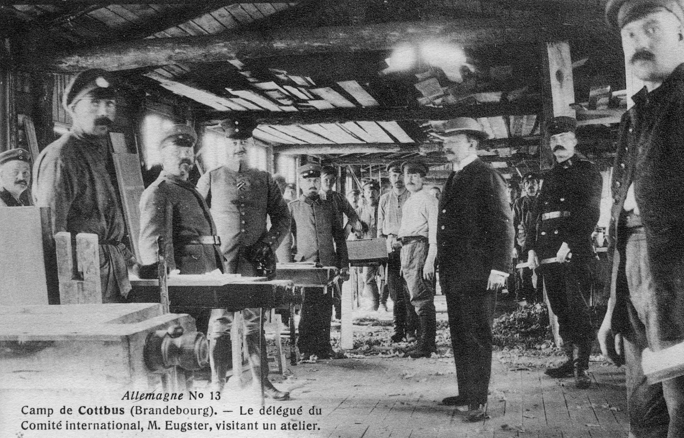 V-P-HIST-03004-17A.JPG Guerre 1914-1918. Brandebourg. Camp de Cottbus. Le délégué du CICR, M. Eugster, visitant un atelier. War 1914-1918. Brandebourg. Cottbus camp. ICRC delegate, M. Eugster, visiting the workshop. Share this article