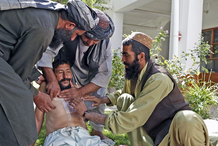קנדהאר, אפגניסטן, 29 באוגוסט 2016. עבד אל-וואלי (מימין) מתרגל הענקת עזרה ראשונה לאדם שנפצע בחזה. CC BY-NC-ND / ICRC / Shamshad Omar Share this article