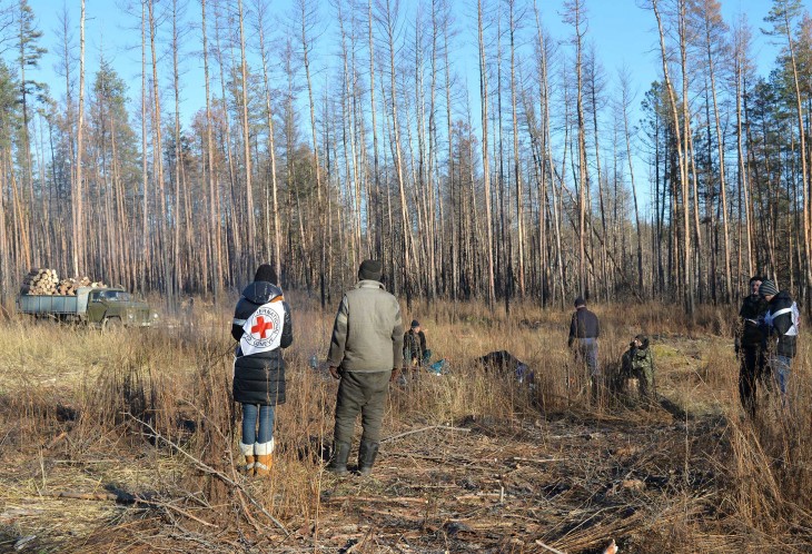 מחלקת היערות, אזור סטינצ’נו. חוליית עבודה מבראת את השטח מעצים וענפים מתים.