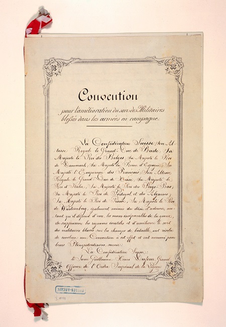V-P-HIST-00122.JPG Première page de la Convention de Genève du 22 août 1864. (L'original est conservé aux Archives fédérales à Berne.) First page of the Geneva Convention of 22th of August 1864. (The original document is kept by the Federal Archives in Bern.) Share this article