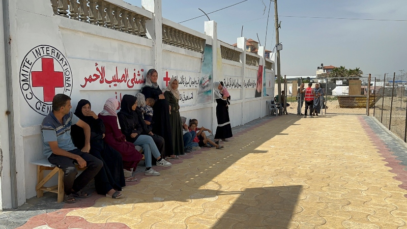 Gaza Strip, Rafah, ICRC field hospital. Children and adults are waiting to be treated. (2024/ICRC/Abed Shana’a)