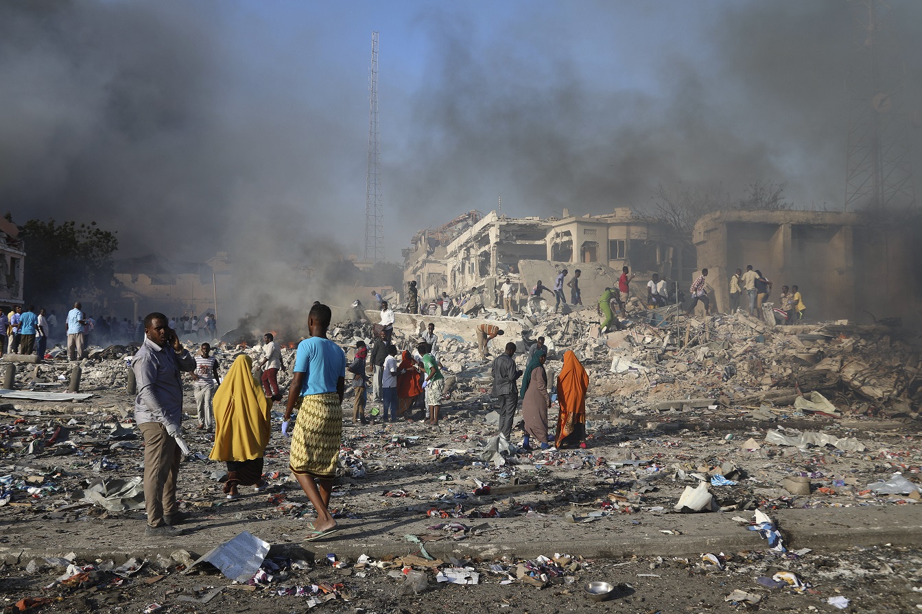 Mogadiscio, district de Hodan. Des civils s'apprêtent à porter les dépouilles de personnes non-identifiées après une explosion. Mogadishu, Hodan district. Civilians prepare to carry dead bodies of unidentified persons after an explosion. Site web du CICR, communiqué de presse “Somalie : les hôpitaux reçoivent du matériel médical pour les victimes de l’attentat”, 16 octobre 2017 "Mogadiscio / Nairobi (CICR) – Le Comité international de la Croix-Rouge (CICR) et le Croissant-Rouge de Somalie s'emploient à répondre aux besoins en aide d'urgence au lendemain de l'attentat dont Mogadiscio a été le théâtre samedi dernier. Deux jours plus tard, le bilan continue de s'alourdir au fur et à mesure que de nouveaux corps sont retirés des décombres. Au cours des dernières 48 heures, des sources officielles ont fait état de 276 victimes, alors que 284 personnes grièvement blessées ont été admises dans les hôpitaux Medina, Keysaney, Daru Alshifa, Mogadishu City, Somali Sudanese et Kalkaal. Une grande partie des corps retirés des décombres sont à tel point calcinés qu'il est impossible de les identifier. « Nous mettons toute notre énergie à soutenir les opérations de secours sur le terrain. Secouristes, médecins, infirmiers et volontaires redoublent d'efforts pour venir en aide aux survivants et fournir des sacs mortuaires afin que les morts puissent être enterrés dans la dignité », explique Daniel Gerard O'Malley, chef adjoint de la délégation du CICR à Mogadiscio. Des kits de matériel médical ont été remis aux hôpitaux qui en manquaient, tandis qu'une équipe chirurgicale mobile déployée à Mogadiscio apporte son soutien aux personnels des hôpitaux, qui peinent à faire face à l'afflux de blessés. Malgré les difficultés, les équipes de secouristes du Croissant-Rouge de Somalie ont pu aider à évacuer des dizaines de blessés dans les heures qui ont suivi l'explosion. « Nous ne pourrions faire ce que nous faisons sans les 38 volontaires de la Société nationale, qui ont fait preuve d'un courage incroyable pour sauver des vies avec des moyens très limités », reconnaît Yusef Hassan Mohamed, président du Croissant-Rouge de Somalie. « Alors que nous pleurons les disparus, nous faisons aussi tout notre possible pour venir en aide aux survivants, de sorte que la population puisse revenir peu à peu à une vie normale »." ICRC website, news release “Somalia: Urgent medical supplies reach hospitals for bomb blast victims”, 16 October 2017 "Mogadishu/Nairobi (ICRC) – The International Committee of the Red Cross (ICRC) and the Somali Red Crescent Society (SRCS) have been responding to urgent needs following Saturday's explosion in Mogadishu. Two days on, the death toll continues to rise as bodies under the rubble are discovered. In the past 48 hours, official sources confirm the deaths of 276 people, while over 284 survivors have been admitted to Keysaney, Medina, Daru Alshifa, Mogadishu City, Somali Sudanese and Kalkaal hospitals. The wounded are receiving treatment for the serious injuries they have sustained. As the death toll rises with bodies pulled slowly from beneath the rubble, some of the bodies recovered are charred beyond recognition. "Our energy is geared towards supporting relief operations on the ground. First aiders, medical staff and volunteers continue to ramp up their efforts, supporting operations for those who have survived and providing body bags to ensure the dead are buried in dignity," said Daniel Gerard O'Malley, ICRC's Deputy Head of Delegation currently in Mogadishu. Medical kits have been made available to the hospitals in need of supplies and the presence of a mobile surgical team deployed in Mogadishu comes in support of hospital staff stretched to the limit in managing the influx. Despite the challenges, the SRCS' first aid teams were able to help evacuate dozens of wounded in the early hours following the blast. "Our work would not be possible without the 38 active volunteers of the SRCS that have shown incredible courage in carrying out their duties with limited means," said Mr. Yusef Hasan Mohamed, SRCS' President. "As we mourn the loss of life, our efforts will focus on helping the living so that in time, people can gradually regain a sense of normalcy"."