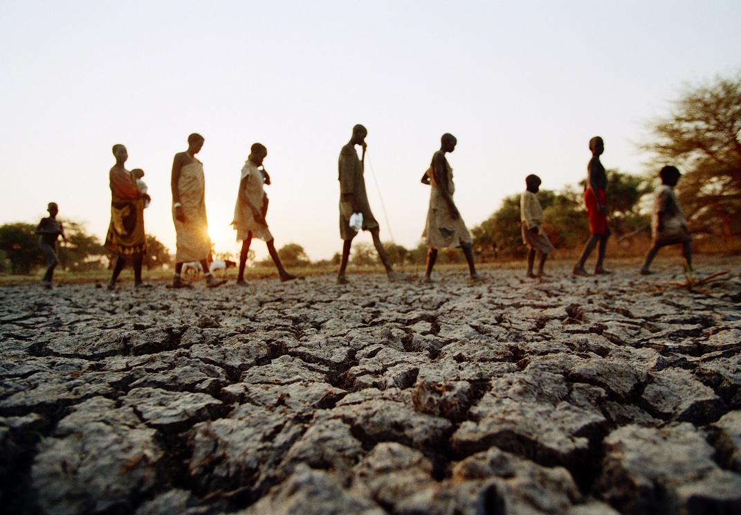 Victimes de la sécheresse quittant leur village à la recherche d'eau et de nourriture. Drought stricken victims leaving their village in search for water and foodstuffs.