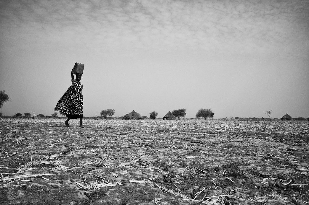 Etat de l'Unité, comté de Pariang, village de Wengoth. Une femme transporte de l'eau. Le CICR a soutenu la construction d'une pompe à eau qui approvisionne la région. Il contribue également à son entretien. Unity state, Pariang county, Wengoth village. A woman carrying water. The ICRC supported the construction of a water pump serving the area. It also assists in the maintenance of the pump.