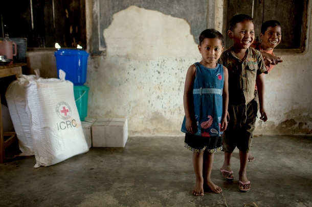 Displaced children of the Rabha tribe pose for a photograph in a school that serves as an IDP camp, Goalpara, Assam, India, Feb. 4, 2011. Because of an ethnic conflict between the Rabha and Garo tribes several thousand people were displaced. Both conflicting parties burned down houses and destroyed means of livelihood of the other tribe. The Garo and Rabha live in the border areas of the Indian states of Meghalaya and Assam. They used to have peaceful relations and even inter-tribal marriages were common. The conflict broke out over land issues.