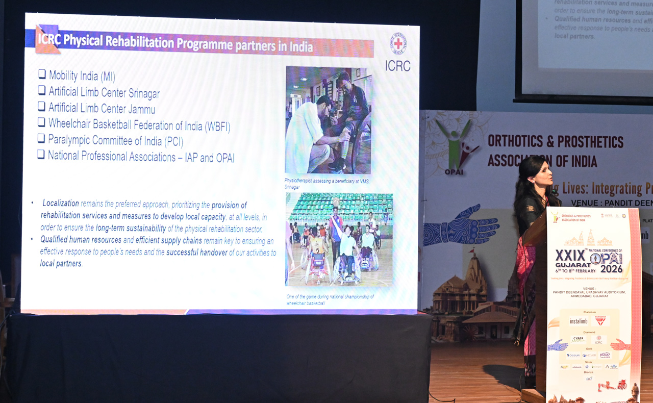 The 29th National Conference of the Orthotics and Prosthetics Association of India (OPAI), held in Ahmedabad from February 6-8, brought together over 700 national and international delegates. Participants included clinicians, academicians, researchers, rehabilitation professionals, industry leaders, and students. The event provided a platform for knowledge exchange, networking, and discussions on technological advancements in the field of orthotics and prosthetics. As the title partner, the International Committee of the Red Cross (ICRC), had the privilege to factor in a humanitarian perspective on Physical Rehabilitation, drawing from its experiences in India and across the globe.