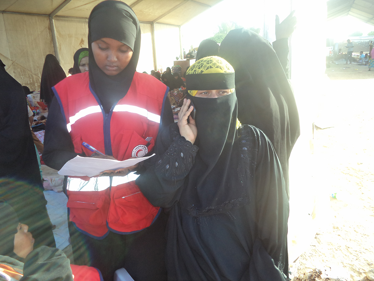 Amina, a Yemeni refugee on call with her mother whom she had lost contact with while fleeing the conflict. Over 5000 people have arrived from different parts of Yemen in Puntland and Somaliland. ICRC is concerned with the growing number of new arrivals as a result of the conflict. Photo.Ayman Touhami