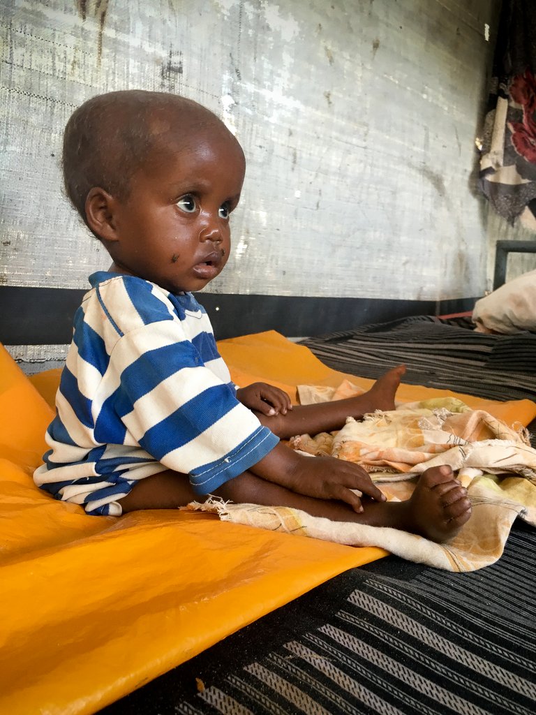 Timiro Ali is a two-year-old girl who has been admitted at the Kismayo stabilization centre suffering from tuberculosis. Timiro, the last of eight children lives with her family in one of the 42 displaced camps within Kismayo town. She was brought to the center by her sister because her mother had to remain behind to look after the other children. ©ICRC/Abdikarim Mohamed