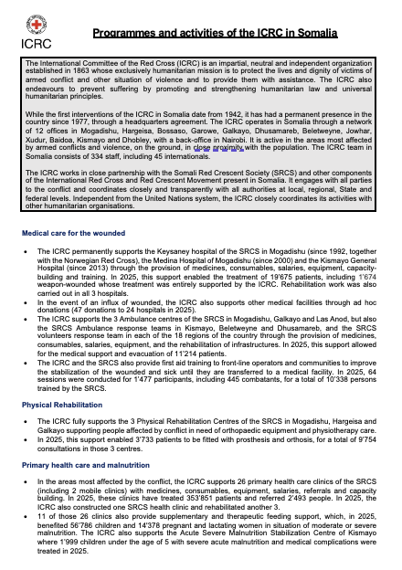 ICRC Programmes and Activities in Somalia