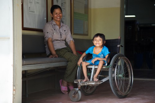 Mother waiting for her young daughter to receive follow up treatment for Polio at the Battambang Regional Physical Rehabilitation Centre,Cambodia.