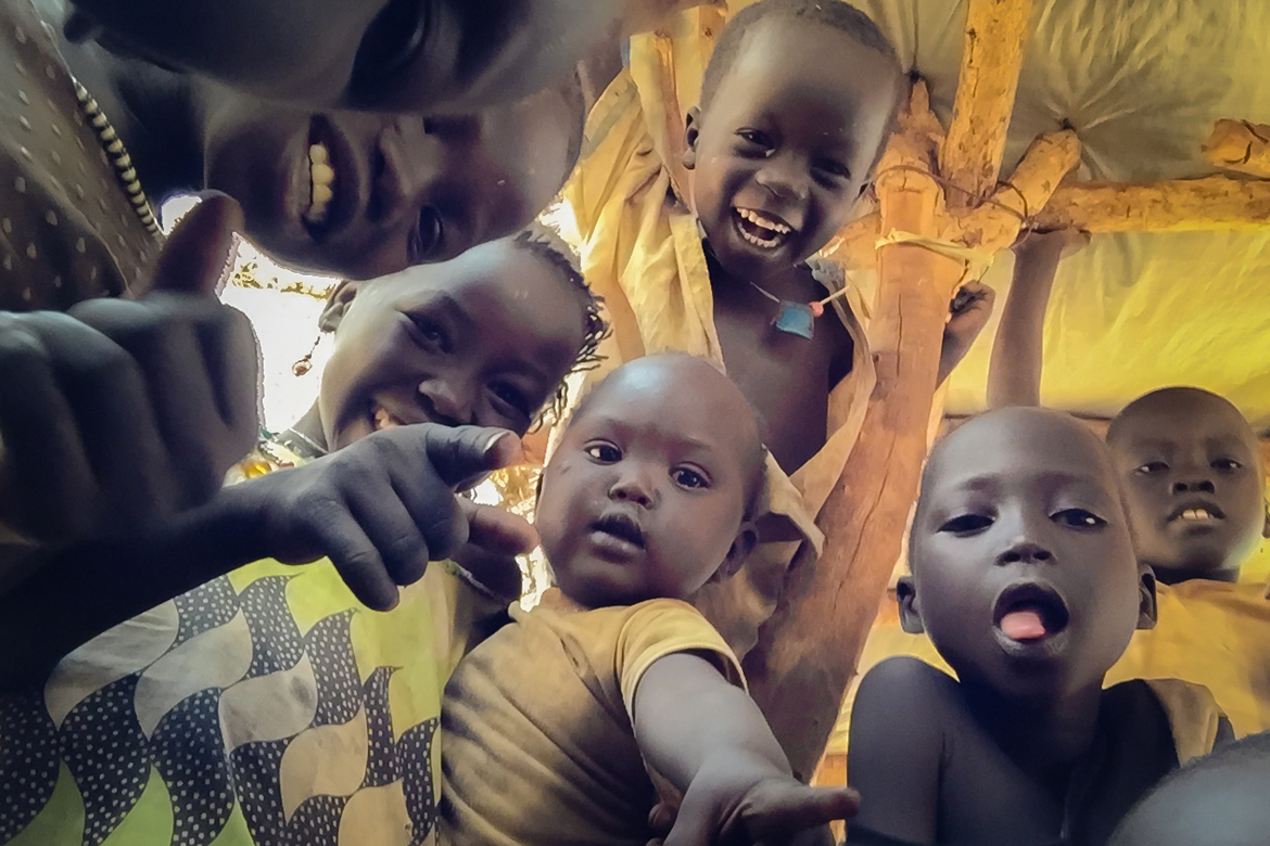 กล้องถ่ายภาพในโทรศัพท์มือถือสร้างความตื่นเต้นในกับเด็กๆขณะที่พวกเขารอคอยเข้าร่วมหลักสูตรการฝึกอบรมปบทพยาบาลเบื้องต้นที่ค่ายผู้อพยพในเขต Gendrassa เมืองมาบัน