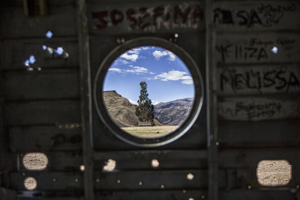 Huancasancos. Un hélicoptère militaire prétendument abattu lors du conflit au début des années nonante. Huancasancos. A military helicopter allegedly shot down during the conflict in the early nineties. Le 27 octobre 2014, après plus de 30 ans d’attente, les familles de 80 personnes portées disparues entre 1983 et 1984 viennent de différentes régions du pays pour récupérer les restes de leurs proches à l’institut de médecine légale d’Ayacucho. Les victimes qui sont de plusieurs communautés d’Ayacucho comme Chungui, Huancasancos, Huanta, Vilcashuamán, Tambo, Canayre, et Huamanga ont été exhumées et identifiées courant 2014. Plusieurs organisations gouvernementale et non-gouvernementales ont contribué à l’événement, comme le Comité International de la Croix-Rouge qui s’est occupé du transport des familles et des cercueils pour les communautés d’Ayacucho, ainsi que la Croix-Rouge péruvienne qui a fourni un abri pour plusieurs familles, venues récupérer leurs proches depuis des communautés reculées. Entre 13’000 et 16'000 personnes ont disparus lors du conflit armé qui a eu lieu au Pérou entre 1980 et 2000. Plusieurs familles ne savent toujours pas qu’elle a été le sort de leurs proches, elles ne peuvent pas faire de funérailles appropriées, résoudre des questions officielles de veuvage ou d’orphelin, ou encore recevoir un support économique, psychologique ou psychosocial et obtenir une compensation. On October 27 2014, after almost 30 years of waiting, the families of 80 people unaccounted for between 1983 and1984 came from different regions of the country, to retrieve the remains of their loved ones at the Legal Medicine Institute of Ayacucho. The victims who were from various communities of Ayacucho such as Chungui, Huancasancos, Huanta, Vilcashuamán, Tambo, Canayre, and Huamanga were exhumed and identified during 2014. Many government and nongovernmental organisations contributed to the event such as the International Committee of the Red Cross who provided transportation of families and coffins to the communities from Ayacucho, as well as the Peruvian Red Cross who provided shelter for many families who came to recover their loved ones from far away communities. Between 13,000 and 16,000 people disappeared during the armed violence that took place in Peru between years 1980 and 2000. Many families are still left without any knowledge of the fate of their relatives, they cannot give them a decent burial, solve official issues of widowhood or orphan hood, to receive economical, psychological or psychosocial support and obtain reparation.