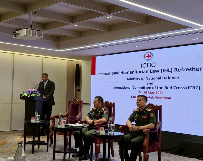 คณะกรรมการกาชาดระหว่างประเทศ (ICRC) และกองทัพประชาชนลาว (LPAF) ได้ร่วมกันจัดการสัมมนาทบทวนความรู้ด้านกฎหมายมนุษยธรรมระหว่างประเทศ (IHL) ณ กรุงเวียงจันทน์ สปป. ลาว ระหว่างวันที่ 15-16 พฤษภาคม พ.ศ. 2568 โดยมีเจ้าหน้าที่ LPAF และผู้เชี่ยวชาญจากคณะกรรมการกาชาดระหว่างประเทศเข้าร่วม