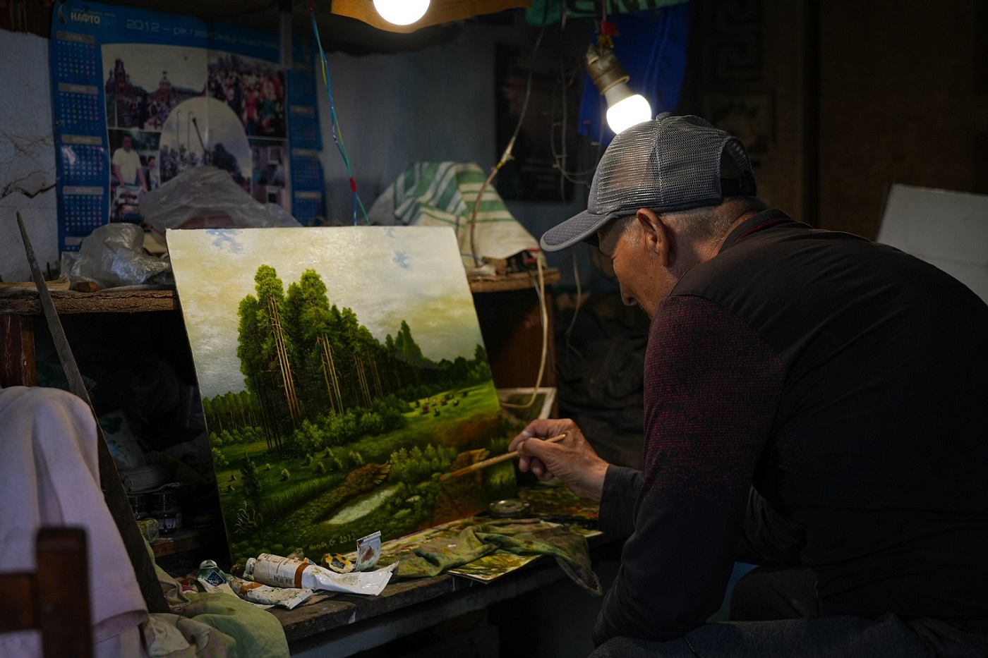 Painter working in spite of war. Reportage photos of Stepan Hryhorovych, dedicated painter who is panting even due to conflict happening nearby. Поширити