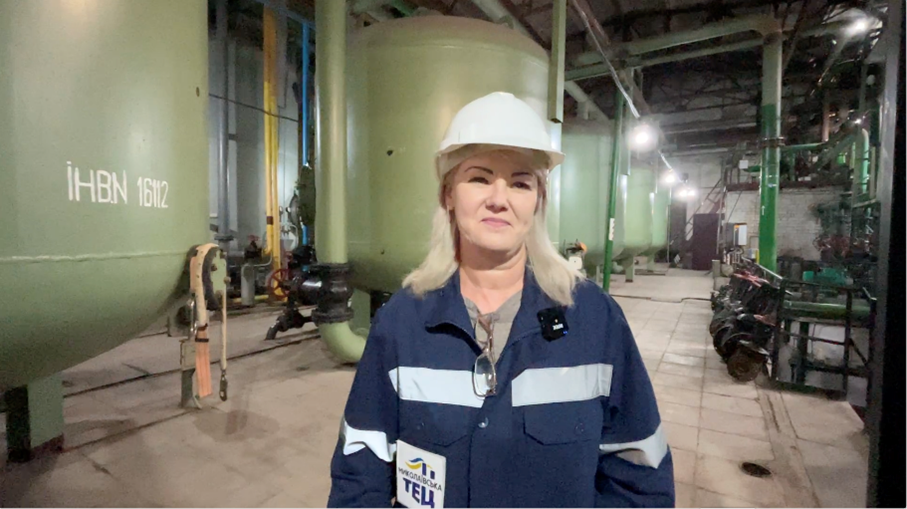 Усередині заводу Наталія Каневська, керівник відділу хімічної водопідготовки, наголошує на важливості основних систем об’єкта.