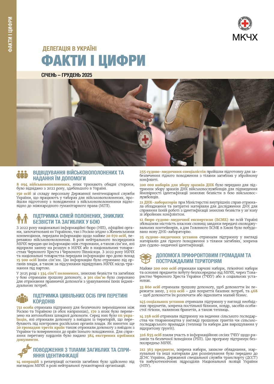 Огляд діяльності Міжнародного Комітету Червоного Хреста в Україні у різних сферах з січня по грудень 2025 р.